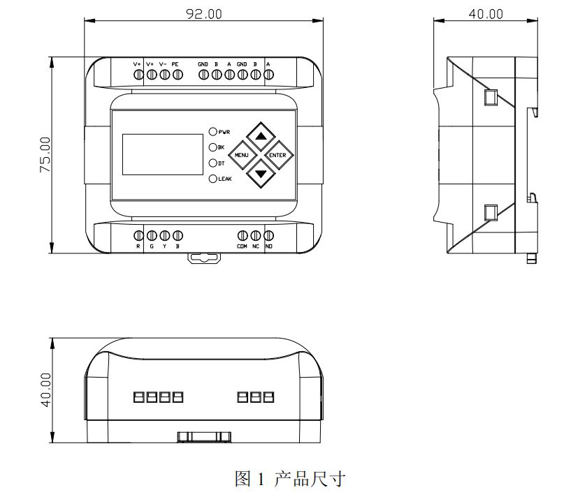 控制器可通過面板按鈕直接設(shè)置通訊地址、波特率等。電源、通訊、感應(yīng)線與繼電器輸出接口如圖所示: