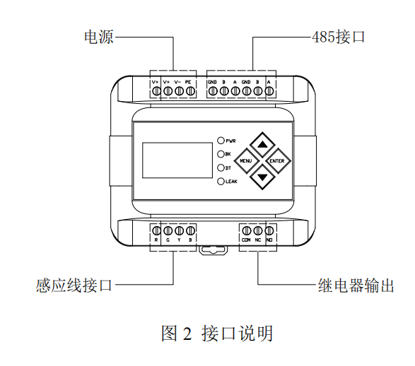 擦干線纜上的水后,繼電器復(fù)位,泄漏指示燈滅,LCD 屏顯示閃爍,長按 ENTER 鍵八秒,系統(tǒng)復(fù)位。